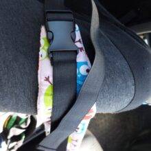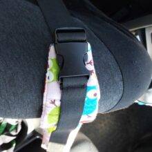 Our Baby Car Seat Head Support Band features an elastic band with a buckle and adjustable length strap. All you have to do is strap around your stroller or car seat where your little one’s forehead is so when he falls asleep, his head will stay upright.