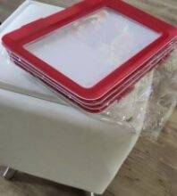 I had been tempted by advertisements for these food preservation trays for a while and finally took the plunge. I think they are great! You can put an entire lunch in them or leftovers and they are much more compact than ziploc containers. The clear cover is stretchy so it can accommodate things with a bit of depth like a sandwich or a banana. They are neat because you can put your lunch in them and they take up about the same amount of space as a laptop in your bag. It slides easily in between your books. In the fridge, they nest together well. Instead of layering leftovers between wax paper, I can divide them up in separate trays and stack them. So far they wash well and return to their original shape after using them. I’m glad I tried them! I will be buying a couple more.