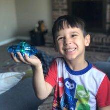 This was a stocking stuffer type present and I didn’t have much in the way of expectations. After using it, I’m surprised this toy isn’t more popular. After charging you turn it on and rock it back and forth for just a few seconds to calibrate it. Then toss it in the air and it takes care of itself. In an open room it moves around on its own and kids can control it with what looks like Jedi hand gestures. In a cramped room it can start acting like a fly on a window screen and bounce around until it loses control because the sensors over compensate. Even so, the propellers are contained inside the body and don’t get damaged or get thread or hair wrapped up in them like other drones. The battery only lasts for about 5+ minutes, but so does my toddler’s attention span, so it’s still a great little toy.